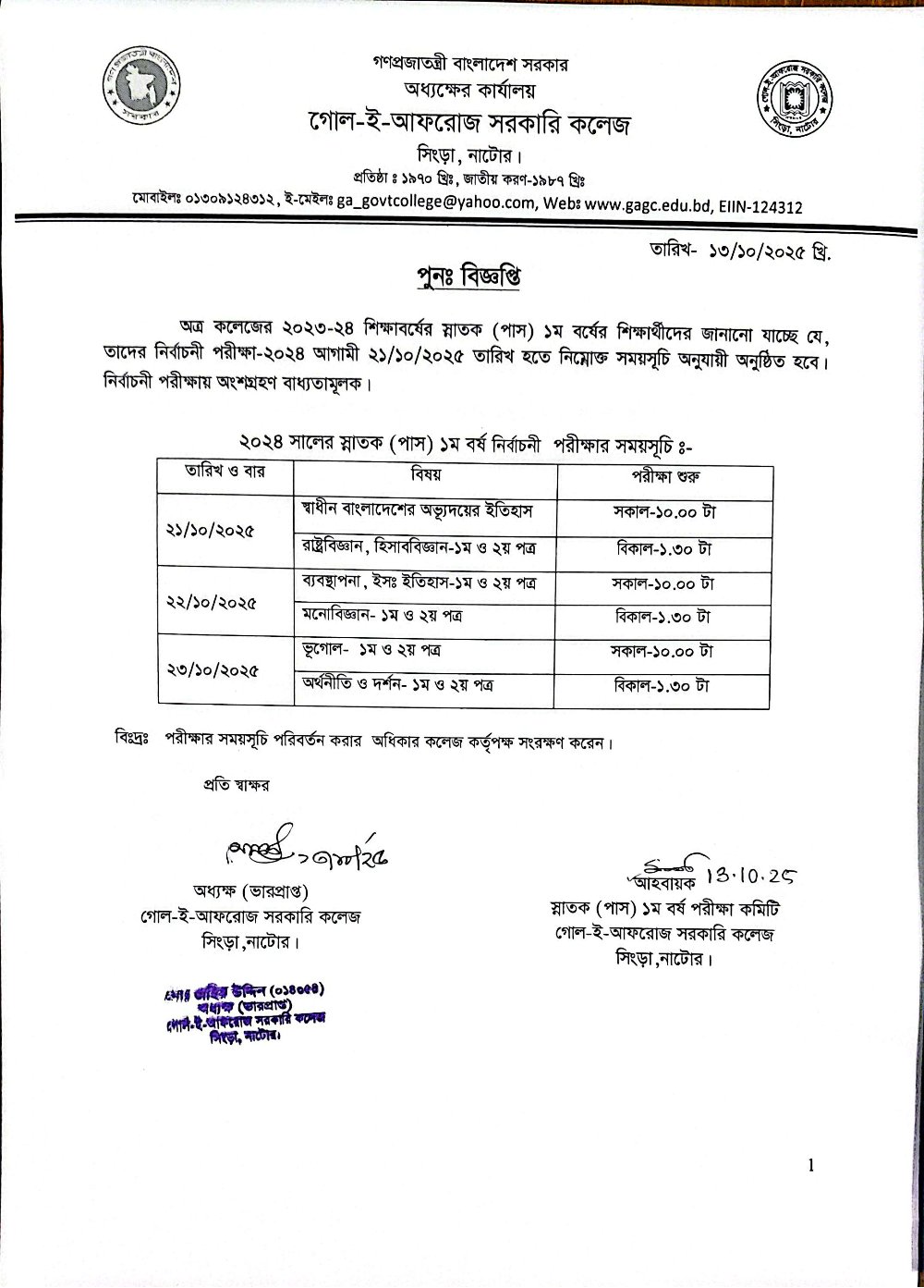 ডিগ্রী ১ম বর্ষ নির্বাচনী পরীক্ষা-২০২৪ সংক্রান্ত বিজ্ঞপ্তি